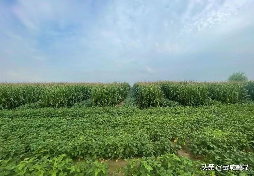 盛夏武威,滿目蒼翠。走進(jìn)涼州區(qū)武南鎮(zhèn)大豆玉米帶狀復(fù)合種植基地,一排排玉米碧綠健壯、茁壯生長(zhǎng),一壟壟大豆生機(jī)勃勃、郁郁蔥蔥……