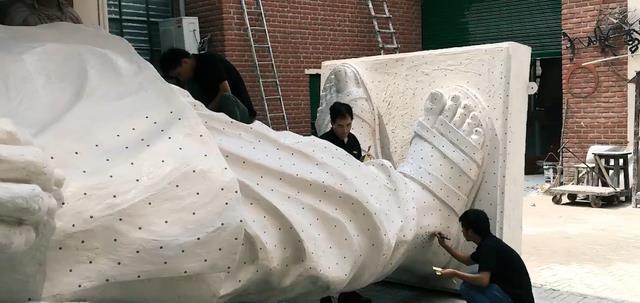 因?yàn)槁浜蟮纳a(chǎn)力,印度國內(nèi)的建筑水平根本無法適應(yīng)應(yīng)付如此龐大的工程,換句話講,步子邁大了容易扯了蛋,但高層們哪款這些,我們要的就是面子,你不能建,那就找外包商,于是很快在工程開始后不久,印度大的設(shè)計(jì)公司就把這項(xiàng)艱難的工程交給了中國制造,要說這個建筑也確實(shí)是超出了印度的能力,拋去人工設(shè)計(jì)不說,單單是雕像外層就要用到的青銅板就超過了1700噸,這還不算里面多達(dá)1850噸的青銅,事后一合計(jì),僅材料費(fèi)一項(xiàng)就已經(jīng)接近了5億美元。