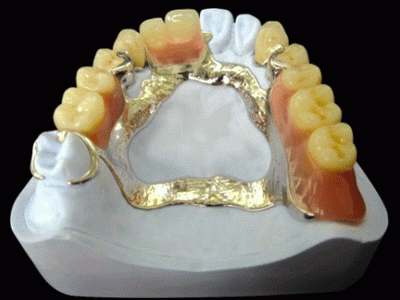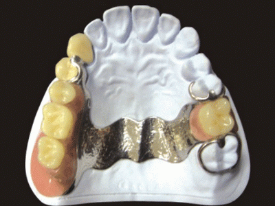 缺牙比較多,可以選擇這種鑄造鋼托的可摘活動義齒,價格低廉,容易清洗。