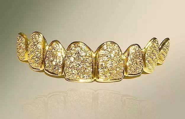 2014年,迪拜牙醫(yī)為滿足各國土豪的“時尚”需求,專門推出了一款由純金和156顆鉆石共同打造的假牙。