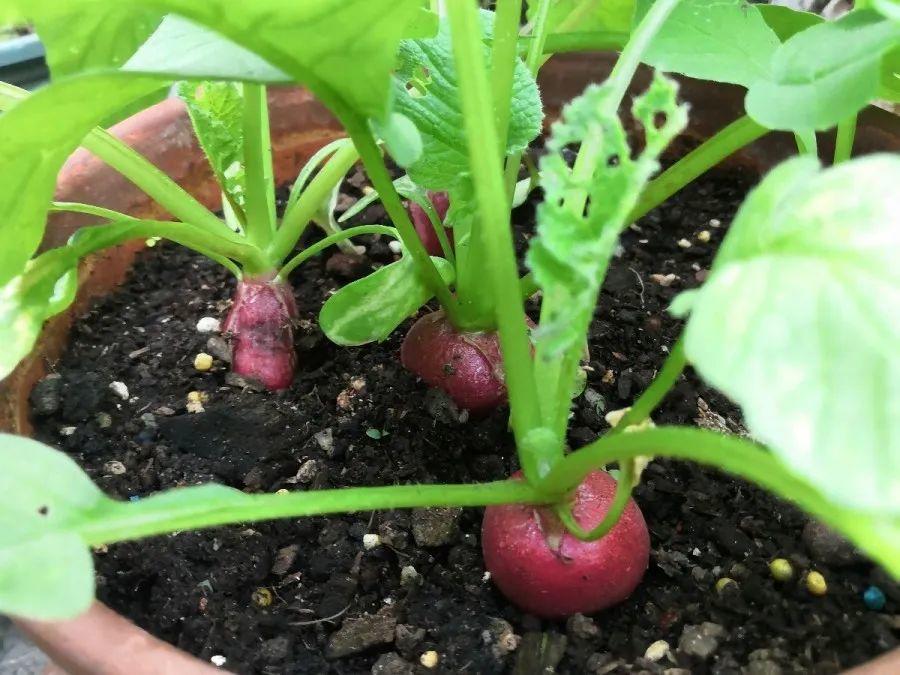 還有一種生長(zhǎng)周期更快的蔬菜,那就是櫻桃蘿卜,3月后播種4-5月份就可能吃到水靈靈、嘎嘣脆的小蘿卜啦。