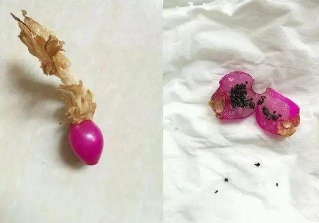 果子干燥之后,就可以摘下來,里面黑色的小籽就是蟹爪蘭種子,稍微晾干用衛(wèi)生紙或報(bào)紙、小塑料袋包著儲(chǔ)存。