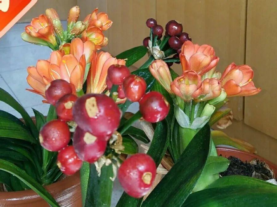 君子蘭開花后也會(huì)結(jié)籽,如果你家開完沒有結(jié)籽,可能是沒有授粉成功,一般植物都可以自然授粉(風(fēng)吹、昆蟲),也可以人工用棉簽蘸取雄蕊上的花粉蹭到雌蕊上。