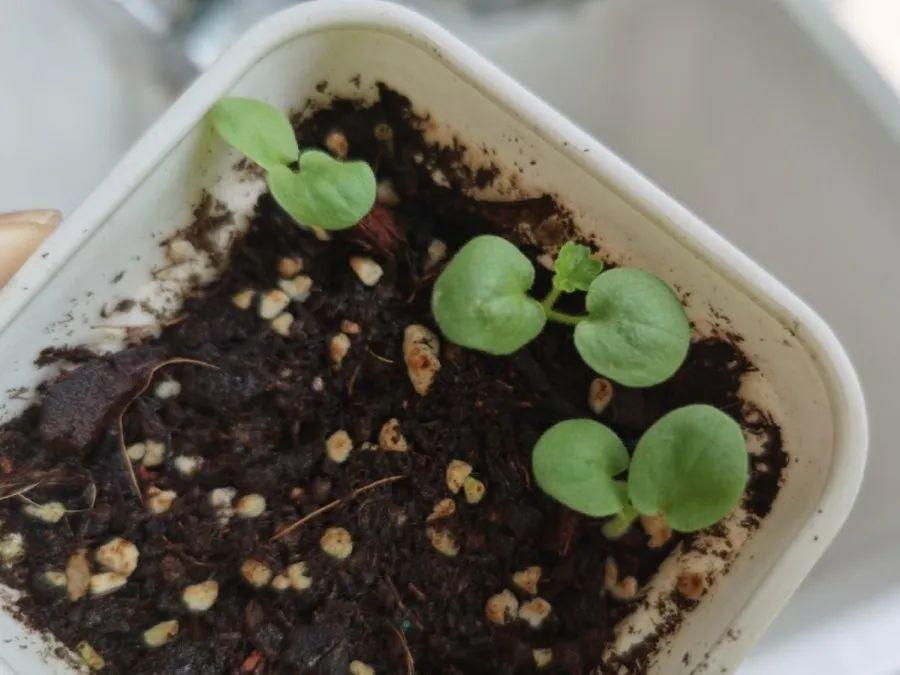 出苗后要記得曬太陽(yáng),不然小苗會(huì)很嫩黃、瘦弱,這時(shí)候也可以撒點(diǎn)緩釋肥補(bǔ)充營(yíng)養(yǎng)。