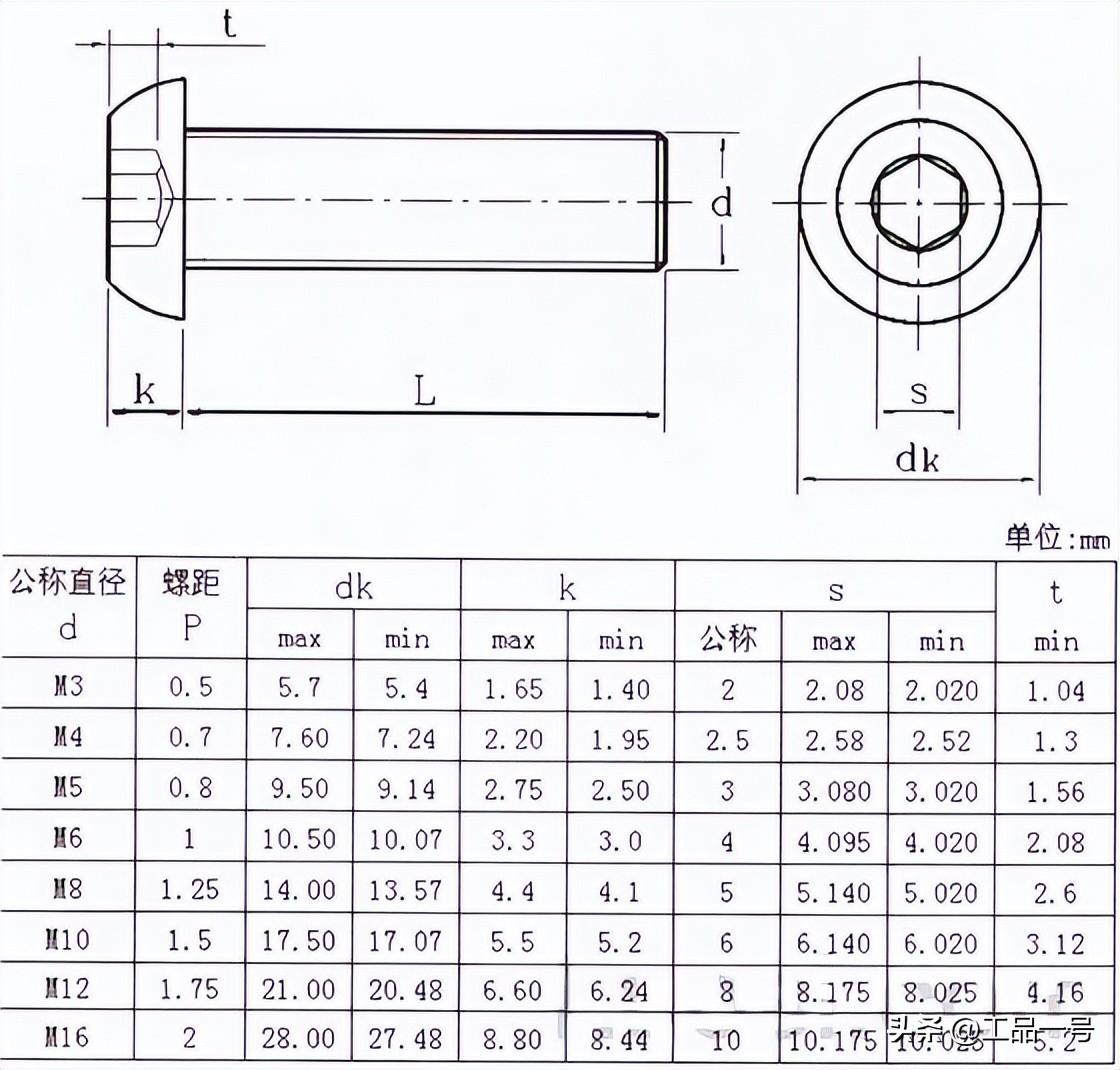 以上為GB /T 70.2-2008 的內(nèi)六角平圓頭的螺釘規(guī)格型號表。有相關需要的可以保存好,不要等需要用的時候再到處找哦~