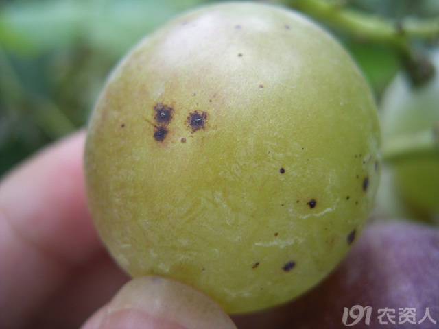 在巨峰上,炭疽病剛發(fā)病的時候是一個很小的點。