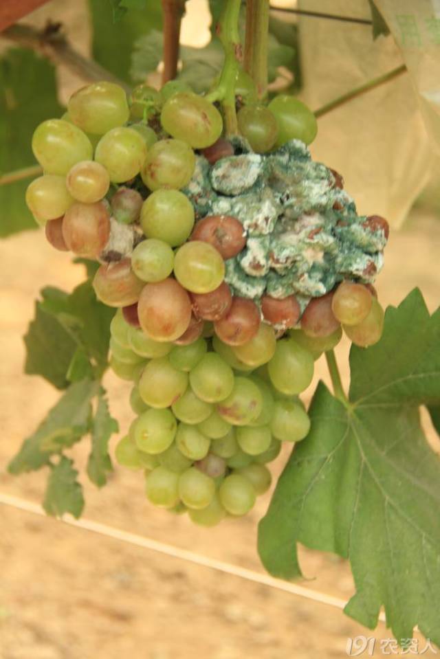 鄭州套袋葡萄灰霉病已發(fā)展成青霉了。