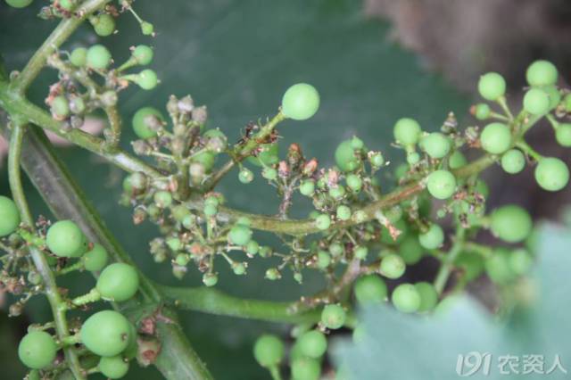 醉金香,6月份發(fā)生白粉病,為害果粒。