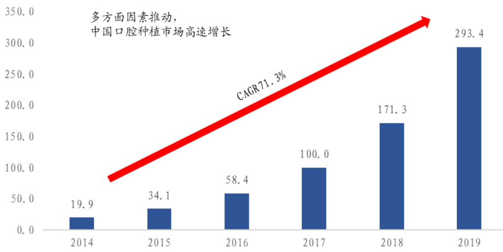 不過,近年來在人口老齡化、消費(fèi)升級(jí)等邏輯驅(qū)動(dòng)下,國內(nèi)口腔種植市場呈高速增長態(tài)勢,根據(jù)Straumann的年報(bào)數(shù)據(jù)估計(jì),2019年相關(guān)市場規(guī)模接近300億元,按照與發(fā)達(dá)對比,未來總體規(guī)??蛇_(dá)2000億元。