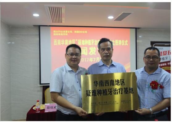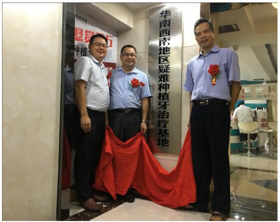 上午9點(diǎn),華南西南地區(qū)疑難種植牙調(diào)節(jié)基地成立揭牌儀式暨新聞發(fā)布會(huì)在熱烈的氣氛中進(jìn)行。瑞士ITI士卓曼公司代表黎斌同、韓國(guó)DIO種植體公司代表徐炫威、嶺南牙科院長(zhǎng)潘蛟南發(fā)表講話。隨后,瑞士ITI種植體公司、韓國(guó)DIO種植體公司、嶺南牙科共同完成授牌交接和揭牌儀式,標(biāo)志著華南西南地區(qū)疑難種植牙調(diào)節(jié)基地在嶺南牙科正式成立。