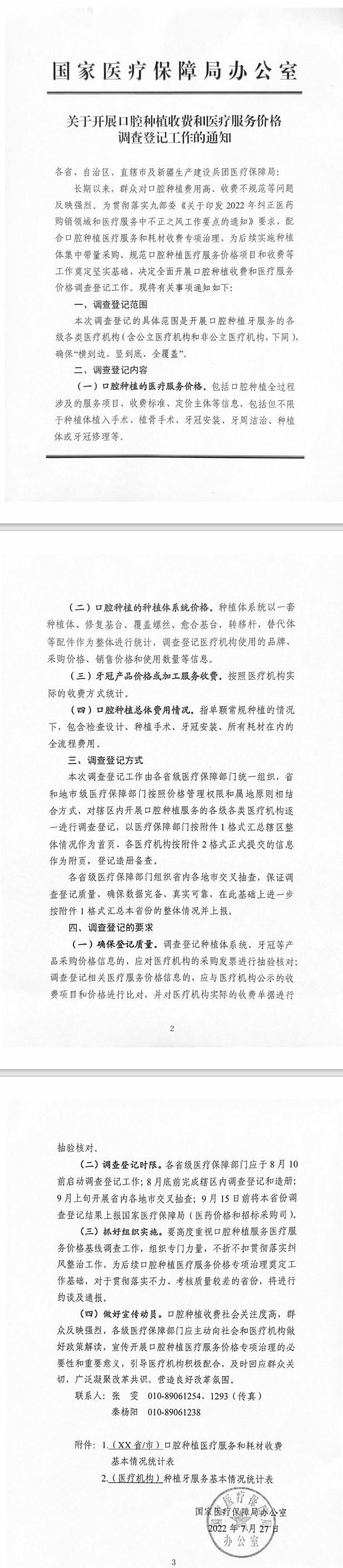 通知表示,為貫徹落實(shí)九部委《關(guān)于印發(fā)2022年糾正醫(yī)藥購(gòu)銷(xiāo)領(lǐng)域和醫(yī)療服務(wù)中不正之風(fēng)工作要點(diǎn)的通知》要求,配合口腔種植醫(yī)療服務(wù)和耗材收費(fèi)專(zhuān)項(xiàng)治理,為后續(xù)實(shí)施種植體集中帶量采購(gòu)、規(guī)范口腔種植醫(yī)療服務(wù)價(jià)格項(xiàng)目和收費(fèi)等工作奠定堅(jiān)實(shí)基礎(chǔ),決定開(kāi)展口腔種植收費(fèi)和醫(yī)療服務(wù)價(jià)格調(diào)查登記工作。