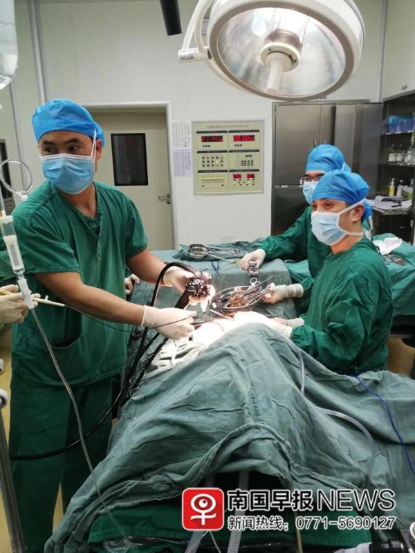 當(dāng)天中午,小李轉(zhuǎn)到欽州市第一人民醫(yī)院,檢查出腹部CT提示胃、十二指腸內(nèi)多種異物,為避免出現(xiàn)刺傷劃傷消化道,該院決定通過手術(shù)調(diào)節(jié)。