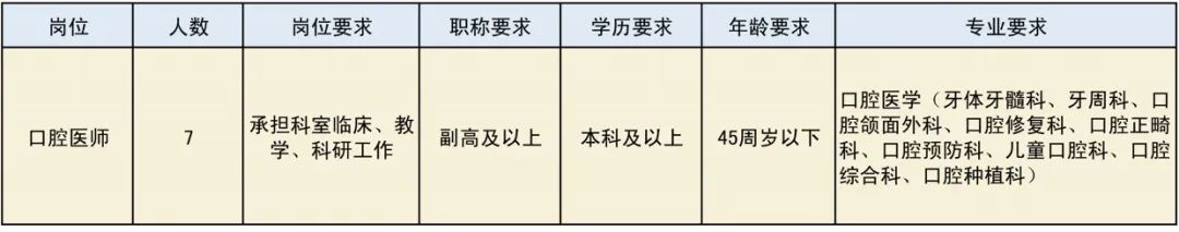 根據業(yè)務開展需要,現面向社會公開招聘口腔醫(yī)師若干名。具體崗位、條件公布如下: