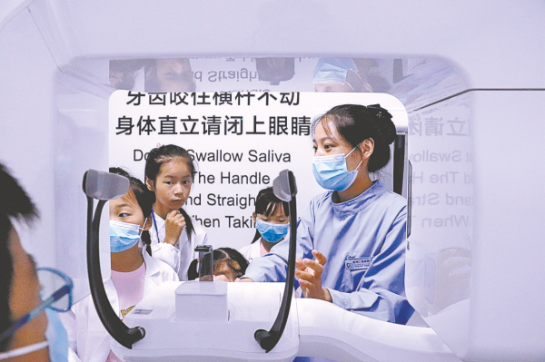 來自新蔡縣月亮灣小學(xué)的小記者們穿上白大褂,和家長一起走進(jìn)新蔡口腔醫(yī)院,在醫(yī)護(hù)人員的帶領(lǐng)下走進(jìn)診區(qū)參觀,認(rèn)識牙科器材,了解診療流程。